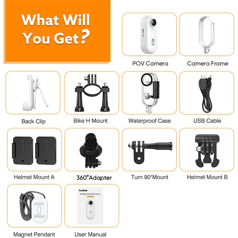 • Thumb size: Our 4k body camera measures just 64.5 x 28 x 20mm. The package includes a magnet pendant, safety cord, and portable back clip, allowing you to wear it on your body or mount it anywhere for recording. With its magnetic design, it can securely attach to any metal surface, providing more mounting options and unlocking creative filming angles.