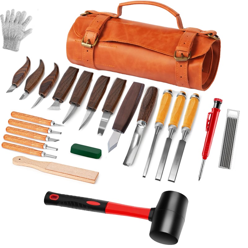 Exquisite storage bag: All the wood carving tools comes in a high-quality leather bag, with double-layer surface and portable handle and strap. Not only can it neatly organize all accessories, but it also allows for easy transportation anywhere.