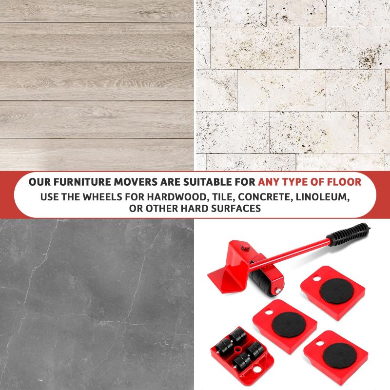 The heavy-duty furniture mover's furniture lift can be used by anyone, using the furniture sliders for hardwood floors to gently lift the desired furniture, then roll underneath and easily slide the furniture to the floor.