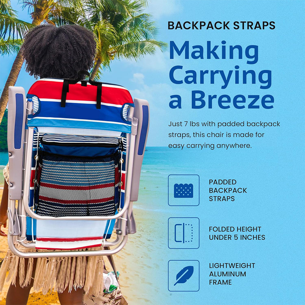 Portable & lightweight: Featuring padded backpack straps and a lightweight 7 lb aluminum frame, this folding beach chair is designed for easy transport wherever you go. Take it to the beach, park, campsite, or any outdoor event without hassle.