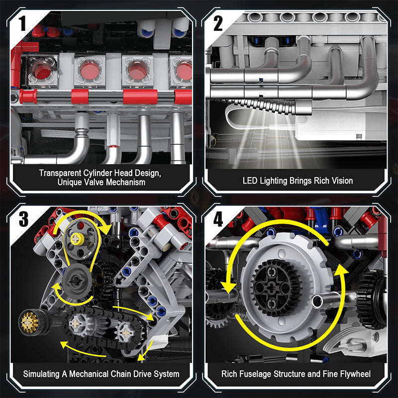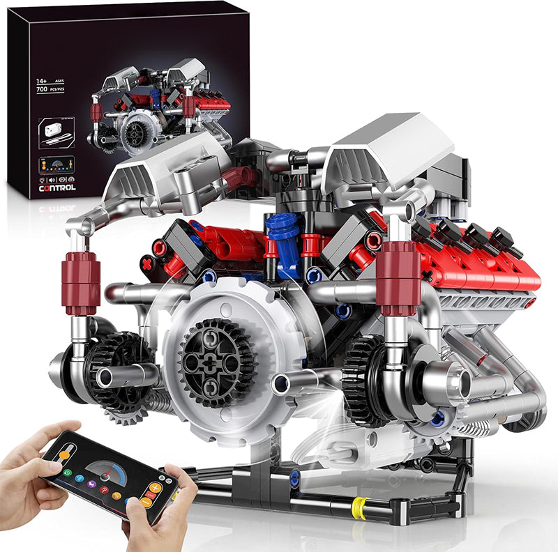 • Authentic: This engine kit includes a motor and one light strip, enabling the model to be electrically driven. Bright LED lights show the power of the motor-driven pistons, you can watch the internal pistons move through the transparent cylinder heads on both sides, and the speed of the engine can be controlled via the app.
