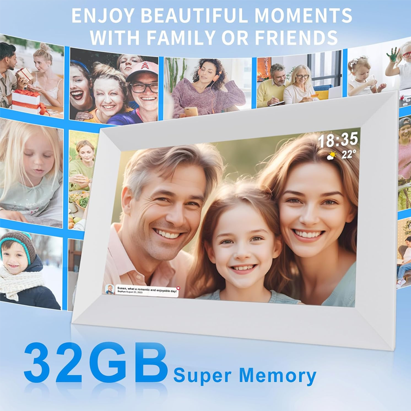 Sakerplus® Smart WiFi Digital Photo Frame with 10.1 Inch IPS Touch Screen, 32GB Storage, Auto-Rotate Display, Wireless Photo Sharing via Frameo App, HD Digital Picture Frame for Family Moments, Portrait and Landscape Mode, Easy Setup Home Decor Frame, Instant Photo Transfer, Smart Digital Album for Parents Grandparents Gifts, Remote Sharing from Anywhere, High-Resolution Screen for Clear Viewing, Video and Photo Playback Support, User-Friendly Interface for All Ages, Perfect for Birthdays Weddings Holidays Family Use
